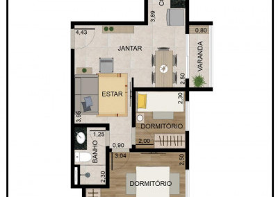 Apartamentos de 45m², 46m² e 55m² – opções pensadas para o seu estilo de vida.